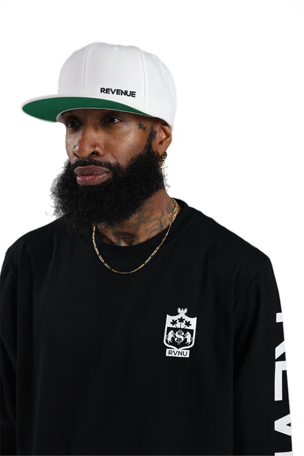 Our snap-back baseball hats, available in core black and white colorways, are crafted from a premium structured wool blend. With a one-size-fits-all design and timeless silhouette, they deliver a confident statement of style, both versatile and unmistakably REVENUE.